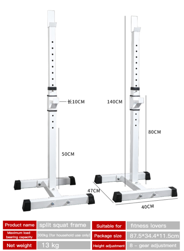 Overview Quick Details Place of Origin: Hebei, China Brand Name: feifanhongyu Gender: Unisex Application: Home Use, Homegymnasiumsports Performance Product Name: Squat rack Color: Optional Combo Set Offered: 0 N.W: 13kg Logo: Customized Avaliable Size: 30*480*1200-1700mm adjustable material: Metal, steel pipe Delivery time: 15 Days Good for:...