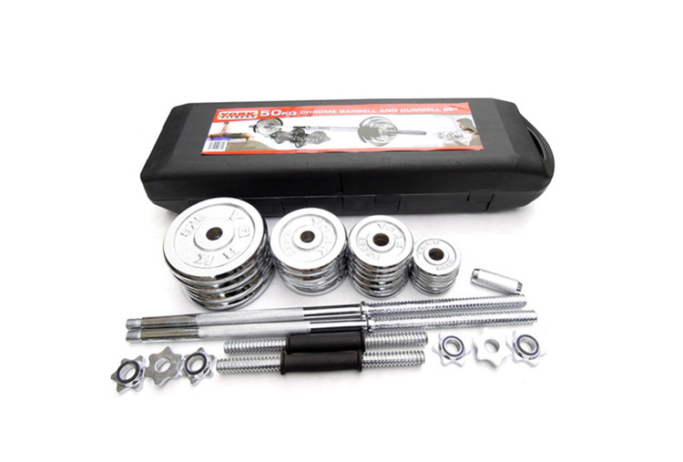 50kg chromed dumbbell barbell set
